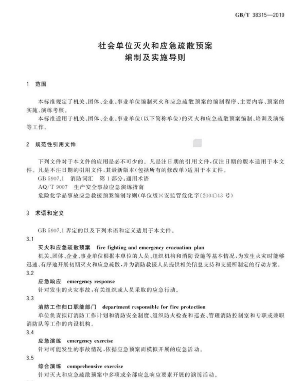 本标准适用于机关、团体、企业、事业单位(以下简称单位)的灭火和应急疏散预案编制、培训及演练等工作。