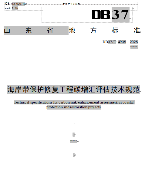DB37/T-4935-2025海岸带保护修复工程碳增汇评估技术规范