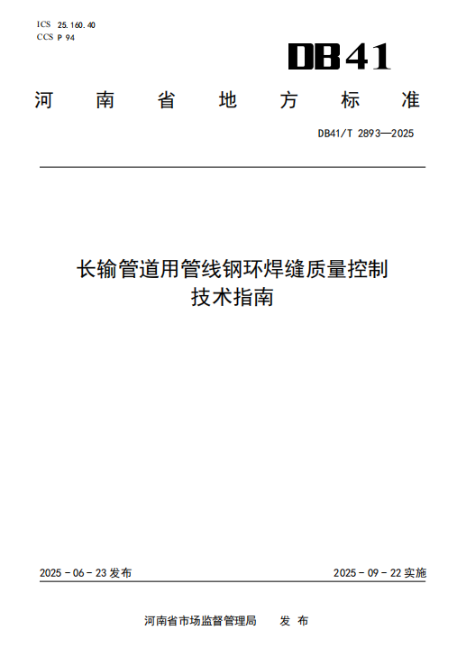DB41/T 2893-2025 长输管道用管线钢环焊缝质量控制技术指南