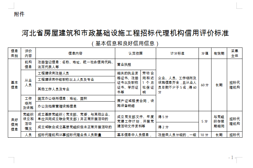 河北省房屋建筑和市政基础设施工程招标代理机构信用评价标准