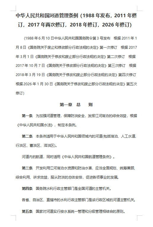 为加强河道管理,保障防洪安全,发挥江河湖泊的综合效益,根据《中华人民共和国水法》,制定本条例。